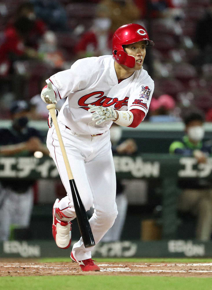 目下売り出し中…広島ドラ2・宇草 自慢の快足飛ばしてプロ初の3ベース!誠也打で反撃の本塁生還