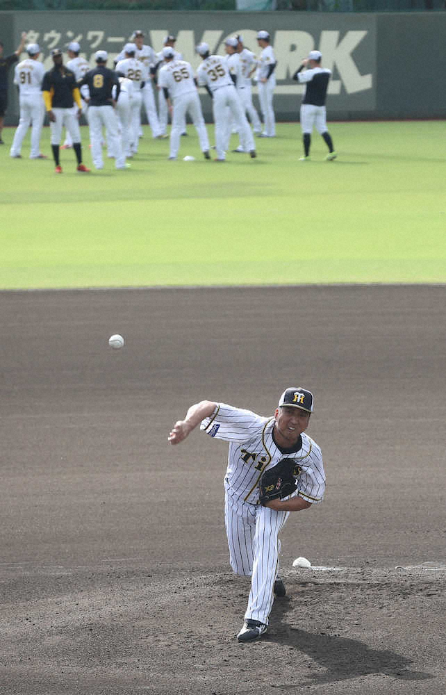 阪神の藤川が、鳴尾浜での残留練習で、グラウンドのマウンドから投げ込みを行った。