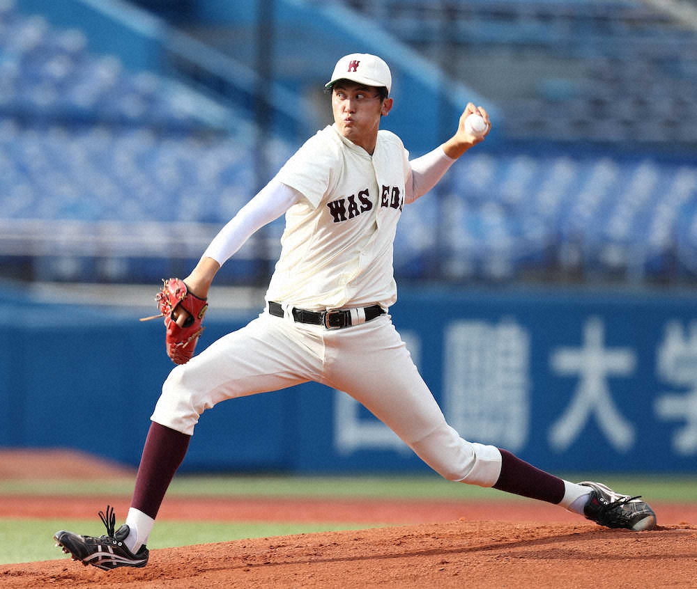 早大の2メートル左腕・今西が3回零封、スカウト「大化けする可能性がある」