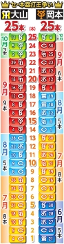 し烈な本塁打王争いをデータで比較 第1打席に強い大山 本拠地で量産する岡本