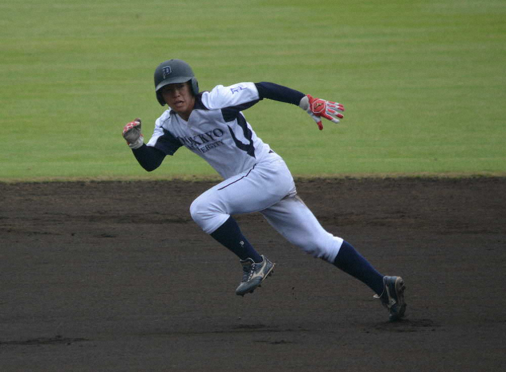 昨冬の大学日本代表選考合宿では、50メートル走で手動計測ながら5秒32をマーク。「サニ・ブラウンに勝った男」こと中大・五十幡亮汰外野手の5秒42を上回った。独協大入学から公式戦通算23盗塁で、なんと成功率は10割。首都大学野球リーグ2部での試合はドラフト前に残り2戦。「“サニ・ブラウンに勝った男”に勝った男」は「足が持ち味なので、そこをアピールできるようにしていきたい」とさらなる上積みをもくろむ。