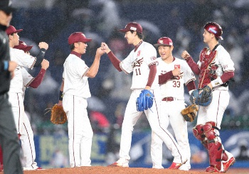 <ロ・楽>4勝目を完封で飾った岸(中央)はナインと喜び合う(撮影・西川祐介) Photo by スポニチ 楽天・岸 逆転CS諦めん!“14年ノーヒッターの地”で897日ぶり完封勝利!自… ギャラリーで見る この記事のフォト 2020年10月16日の画像一覧 もっと見る 2020年10月16日の画像をもっと見る