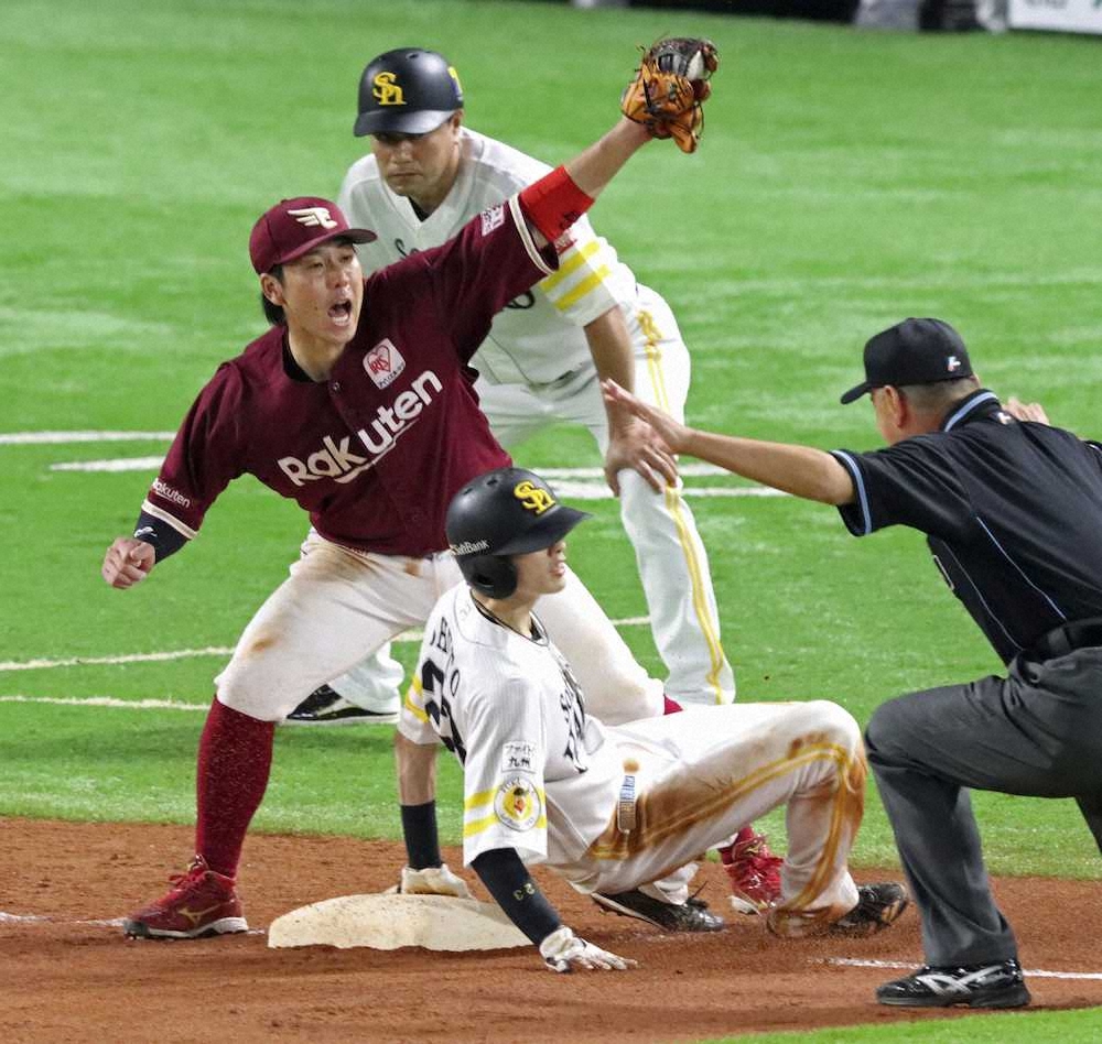 8回、打者・柳田の時に暴投で生還する三走・周東(撮影・岡田 丈靖) Photo by スポニチ ソフトB 今季最多11点で20日にもM9点灯 周東4安打&初の3盗塁 ギャラリーで見る この記事のフォト 2020年10月19日の画像一覧 もっと見る 2020年10月19日の画像をもっと見る