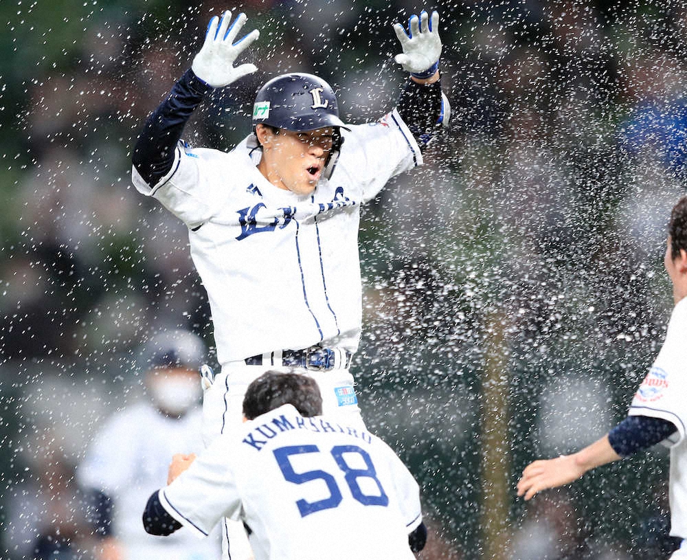 打席で直球を確信した。あとはタイミングを合わせるだけ。西武・山野辺のバットから快音が響いた。二塁走者の外崎が激走し、ヘッドスライディングで生還。「正真正銘」のサヨナラ打で2夜連続の劇的勝利に貢献した26歳は、お立ち台で笑顔を振りまいた。