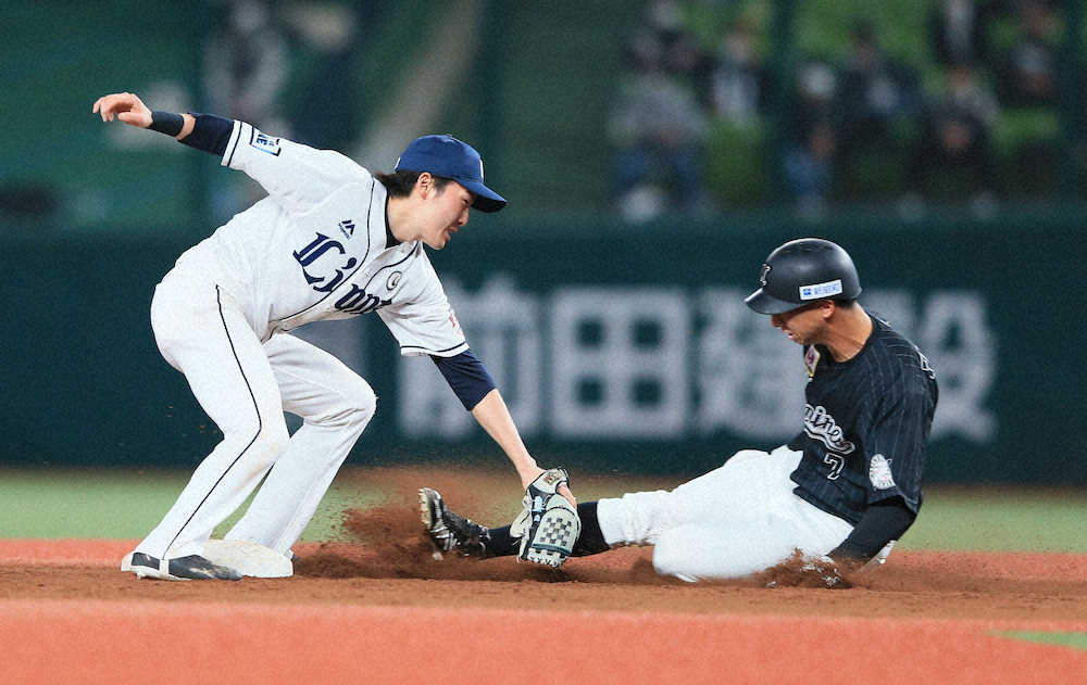 <西・ロ>8回無死一塁、中村奨の邪飛をフィールドビューシートのネットに飛び込みながら捕球した山野辺(右)は、素早くグラウンドに戻り福田のタッチアップを阻止する(撮影・尾崎 有希) Photo by スポニチ 西武また山野辺だ! 「うまく引っかかった」 曲芸キャッチで2位・ロッテ… ギャラリーで見る この記事のフォト 2020年10月23日の画像一覧 もっと見る 2020年10月23日の画像をもっと見る