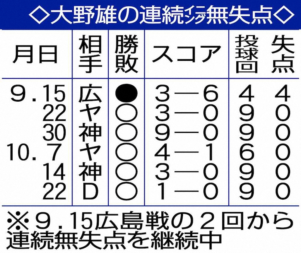 2リーグ制以降の40イニング以上連続無失点投手 Photo by スポニチ 球団記録更新の中日・大野雄 「菅野もしんどかったんやと思う…」 次はプ… ギャラリーで見る この記事のフォト 2020年10月23日の画像一覧 もっと見る 2020年10月23日の画像をもっと見る