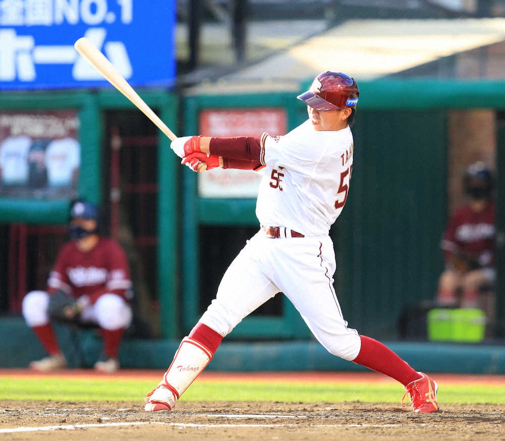 楽天の田中貴也捕手(28)が、24日の日本ハム戦(楽天生命パーク)でプロ初安打を放った。2点を追う4回1死三塁、やや低めの135キロの直球を右前に運んだ。プロ6年目での初安打が適時打となり、初打点もマークした。この一打に続き、小深田が右越えへ逆転2ランを放った。