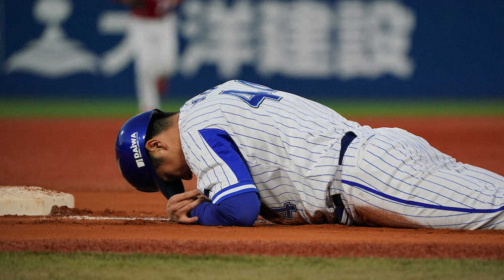 <D・広>8回2死一、二塁、大和の適時打で本塁を狙うも挟殺プレーで負傷した佐野を心配するラミレス監督(撮影・島崎忠彦) Photo by スポニチ DeNA・佐野 5戦ぶり4番出場も左肩負傷で交代 ラミ監督「何事もなければ… ギャラリーで見る この記事のフォト 2020年10月26日の画像一覧 もっと見る 2020年10月26日の画像をもっと見る