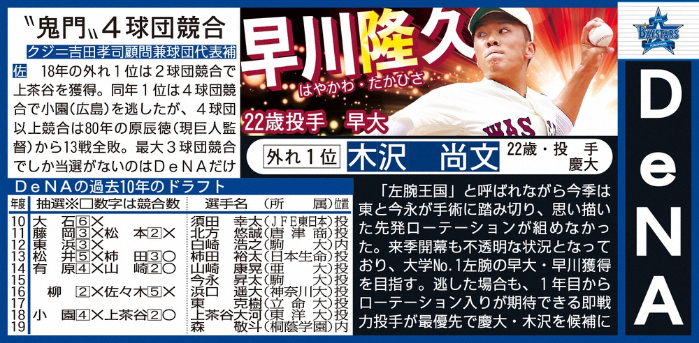 ドラフト1位予想・DeNA