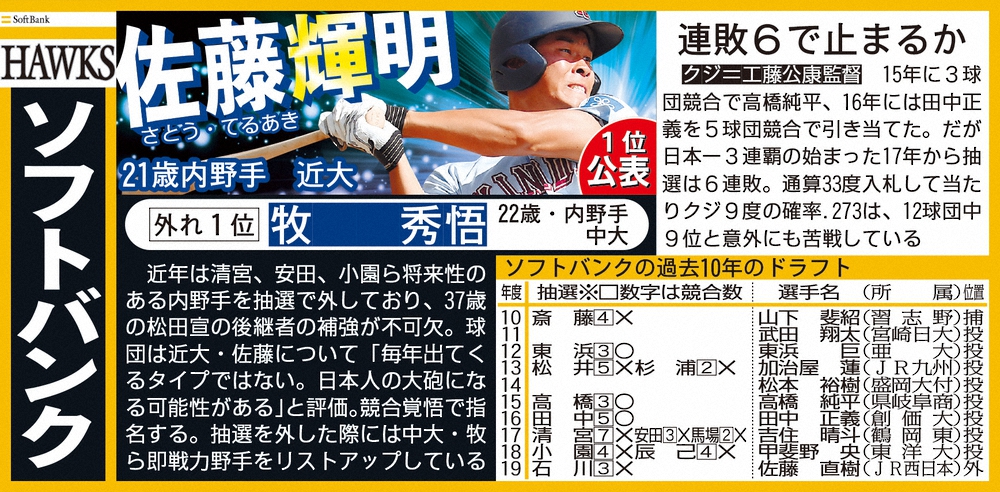 ドラフト1位予想・ソフトバンク