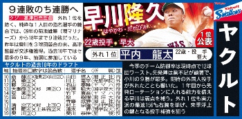 ドラフト1位予想・ヤクルト