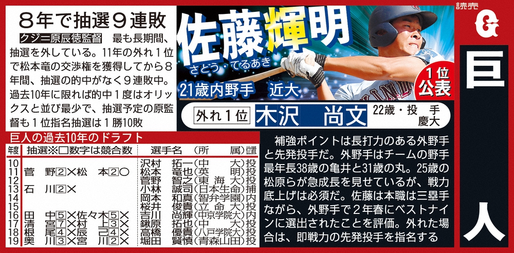 ドラフト1位予想・巨人