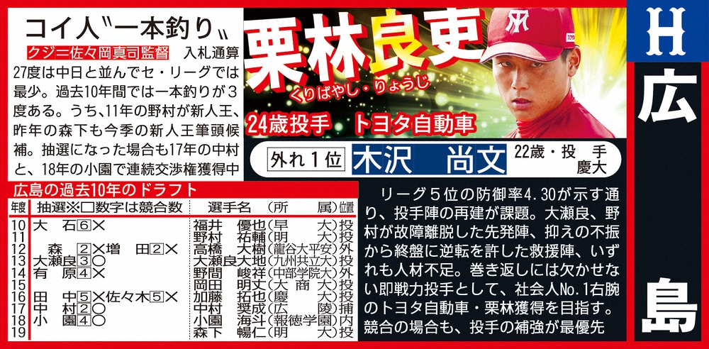 ドラフト1位予想・広島