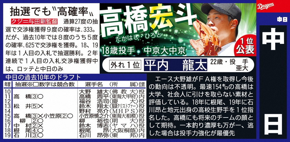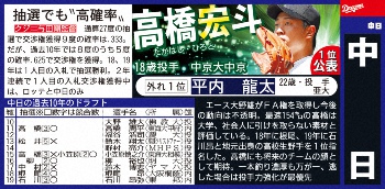 ドラフト1位予想・中日