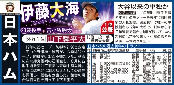 ドラフト1位予想・日本ハム
