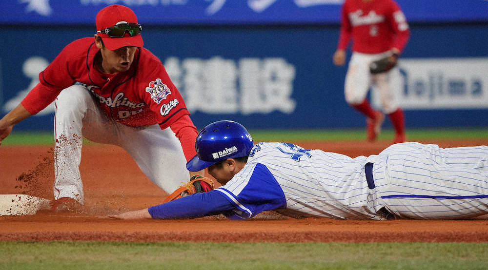 DeNAは背中の張りから5試合ぶりに「4番・左翼」で先発復帰した佐野が、再びアクシデントに見舞われた。8回にヘッドスライディングをした際に左肩を負傷。表情をゆがめながらベンチに戻り、9回の守備から退いた。
