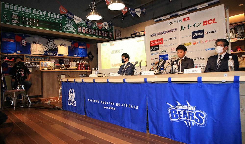 ドラフト会議をBC埼玉・田沢不在で見守った角晃多監督(右から2人目)ら(撮影・西尾 大助)