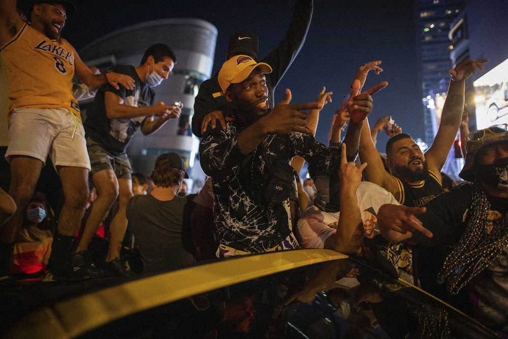 レイカーズ優勝のあとロサンゼルス市内で騒ぐ地元のファン(AP)