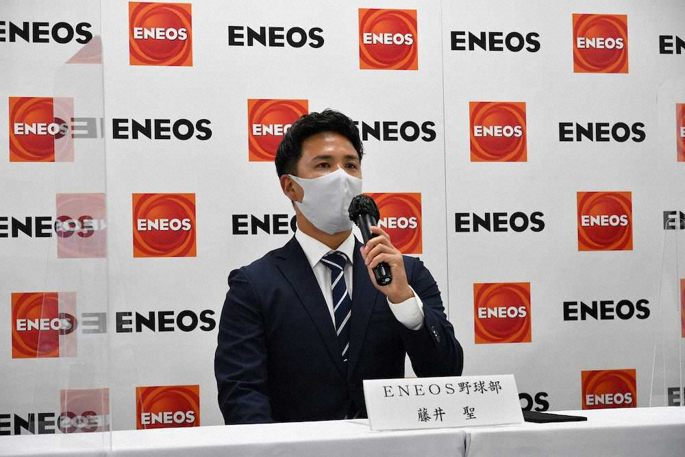 楽天から3位指名を受けたENEOS・藤井は、ようやくたどり着いたプロの舞台に「指名していただいたからには、1年目から全試合、投げたところで活躍できる選手になりたい」と目を輝かせた。