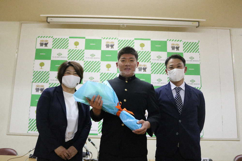 中日から4位指名を受けた倉敷工・福島は校長室のテレビで両親と歓喜の瞬間を迎えた。「正直こんなに早く指名を受けられるとは思ってなかったので素直にうれしい」。