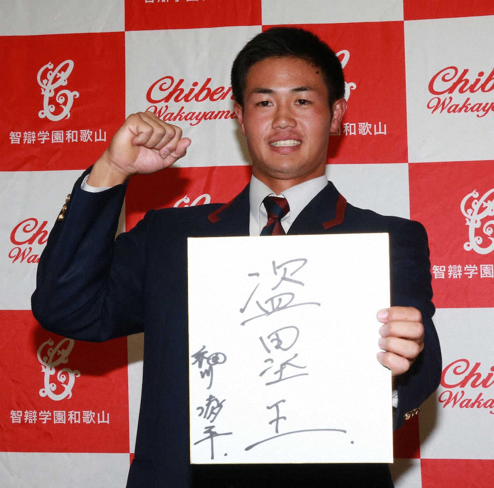 日本ハム4位指名された智弁和歌山・細川は、色紙に迷いなく「盗塁王」と記した。50メートル5秒8の快足が最大の武器。名門にあって1年夏から3季連続で甲子園に出場し、2年夏の明徳義塾戦では右翼へ本塁打も放った。パンチ力も兼ね備える左の巧打者は偉大な先輩・西川の背中を追う決意を示した。