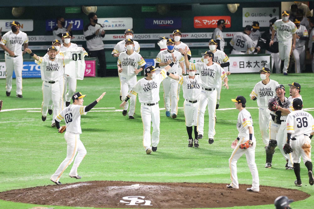 ソフトバンク“新様式”で歓喜 胴上げなし、大きな輪になってファンと万歳三唱