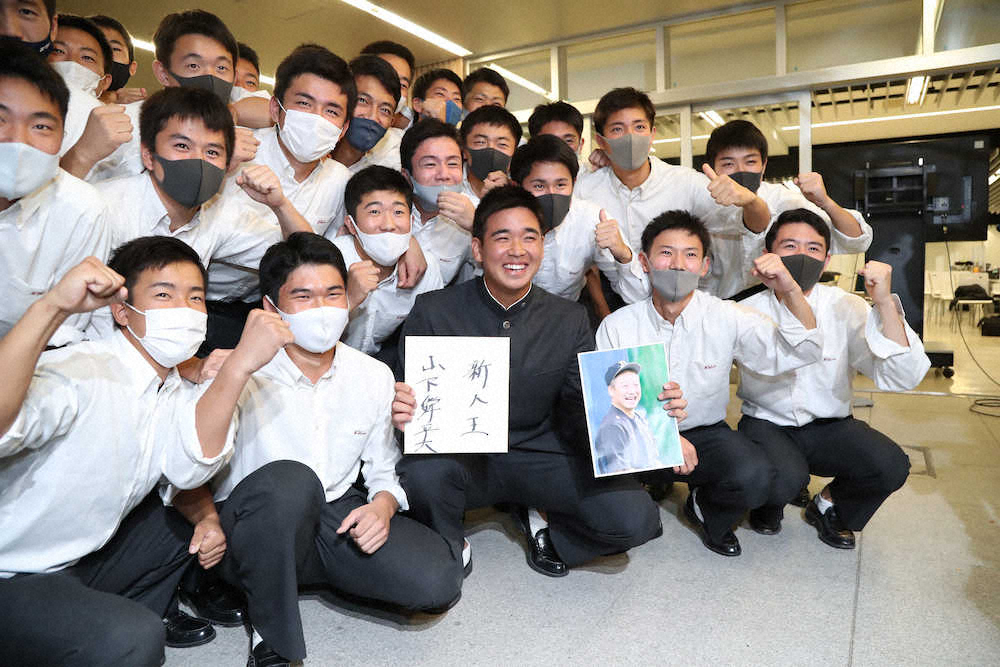 開始から20分後の午後5時34分。山下(福岡大大濠)は、オリックスの外れ1位で名前を呼ばれた。校内の食堂前でチームメートから「ペイタ、おめでとう! 喜びマックス オリックス!」と叫ばれ、表情を崩した。