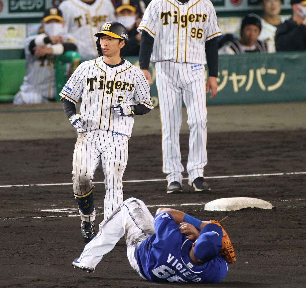 <神・中> 8回2死二、三塁、ビシエドは近本の2点適時打に飛び込んだ際に左肩を痛め苦もんの表情を浮かべる (撮影・後藤 大輝) Photo by スポニチ 中日・ビシエド 左肩付近痛め負傷交代 打点王争い暗雲 ギャラリーで見る この記事のフォト 2020年10月28日の画像一覧 もっと見る 2020年10月28日の画像をもっと見る