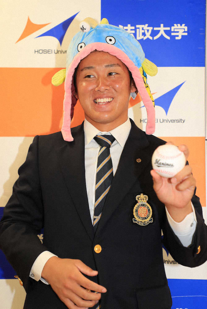 ロッテ1位の法大・鈴木 指名あいさつ12球団一番乗り 笑顔でアピール「昭汰と呼んでくれたらうれしい」