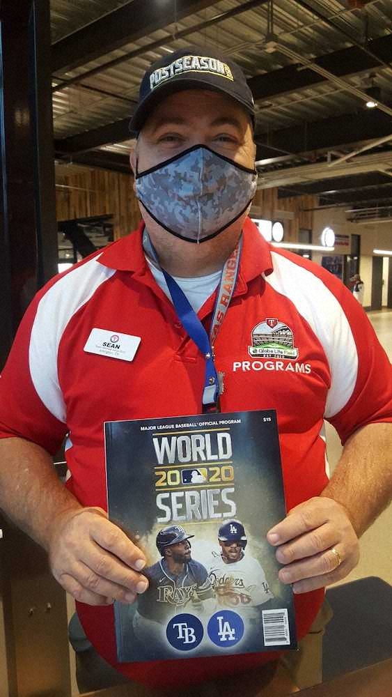10月20日、ワールドシリーズ第1戦の日が新球場での初仕事。203日間も待った。「他の球場ならチャンスがなかったわけで、私は幸運だった。プログラムも毎日3000部も売れているよ」。ワールドシリーズは約1万1000人と観客数を制限しているため、球場で働くスタッフも500人と通常の半分。それでも、ようやく球場で働けた喜びに、スタッフたちの表情は笑顔に包まれていた。(奥田秀樹通信員)