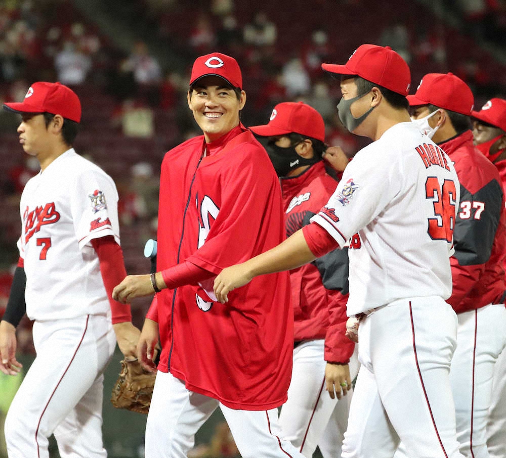 大瀬良、野村がともに戦線離脱。9月下旬から先発陣では最年長となった責任感が自身の背中を押す。この日を含め10月は4戦3勝無敗で防御率0・58とし同僚の森下らと月間MVPを争う。「いま(チームで)一番勝っているのは(9勝の)森下。そこに負けないように頑張ります」。好調の裏には、先輩としての意地があった。