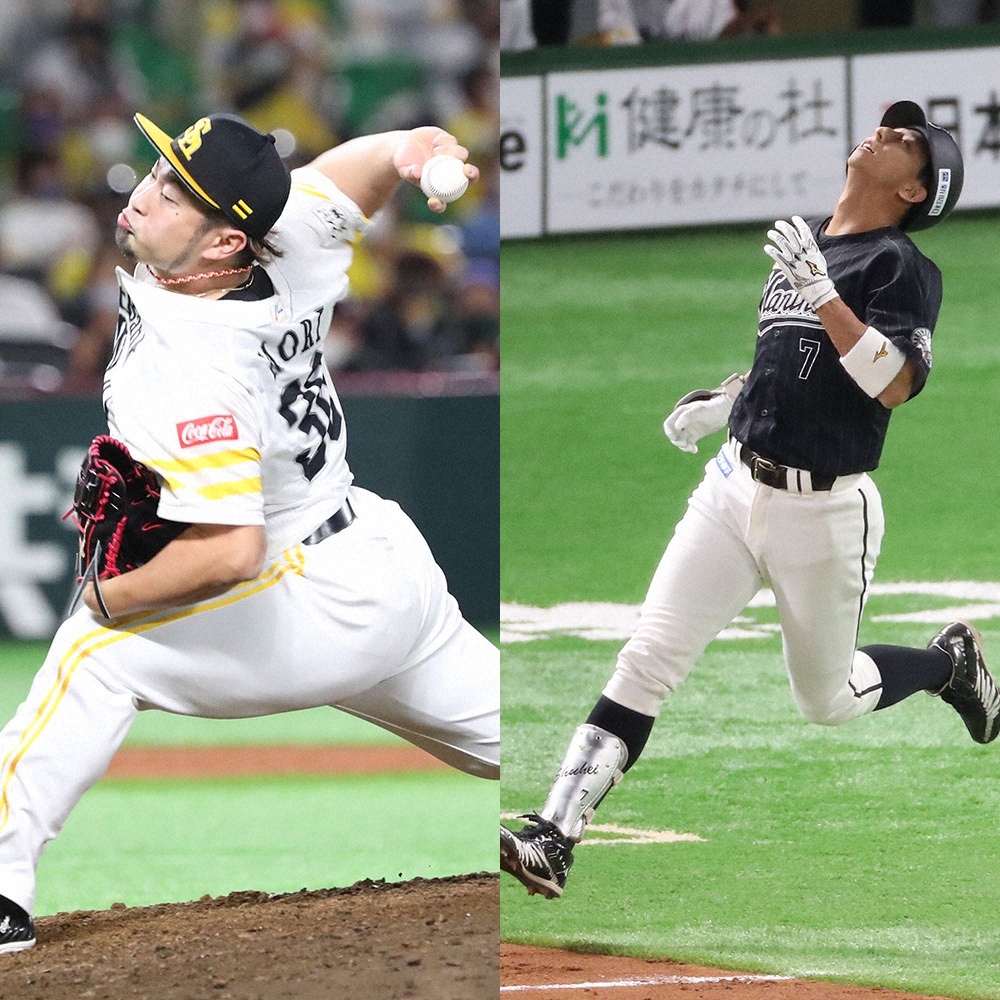 ソフトバンクの森唯斗(左)とロッテの福田秀平
