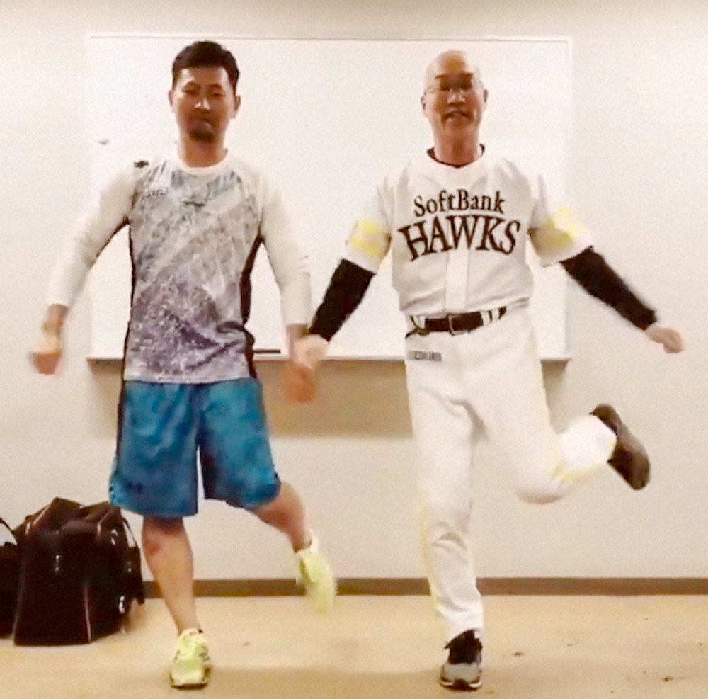 川村さん(右)とダンスを披露する中村晃(福岡ソフトバンクホークス公式ツイッターから)