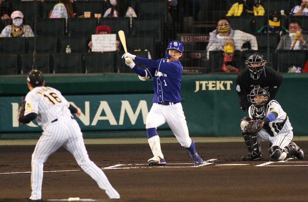 中日・京田が先制ソロ。初回1死から西勇のスライダーを振り抜くと、打球は右翼ポール際に吸い込まれ「好投手から、まずは先制点を取れて良かったです。しっかりスイングすることができました」とうなずいた。