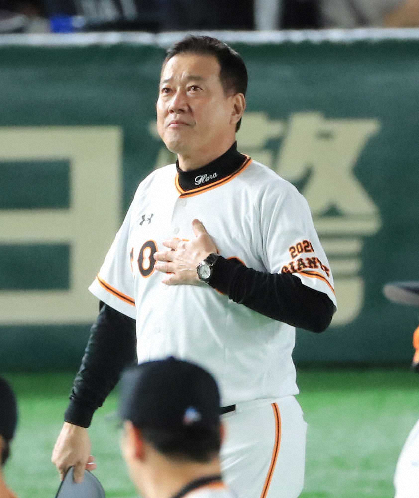 <巨・ヤ>目を潤ませながら右翼スタンドへ向かう原監督(撮影・木村 揚輔)