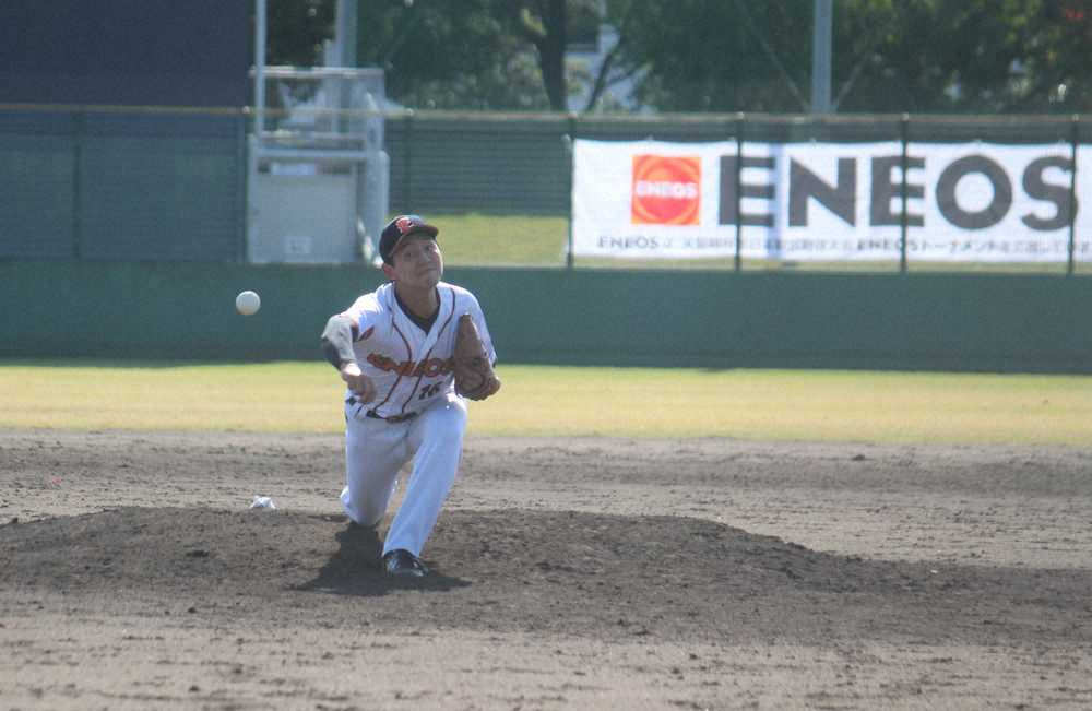 ENEOS大分製油所(大分)は倉敷運動公園野球場でグリーンセレモニーアスレチックス(埼玉)と対戦し2―0で勝利。主戦の松原が相手打線を1安打に抑えて完封した。昨年、準々決勝の佐藤薬品工業(奈良)戦で打ち込まれ、敗戦投手となった右腕は、横手投げに変えて安定感がアップ。「これからも投げる試合は全部勝ちたい」とフル回転を誓った。