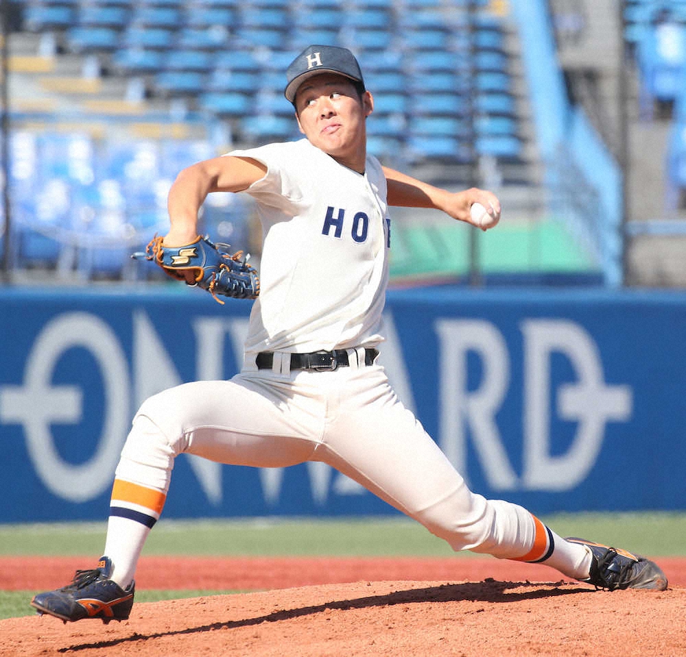ロッテにドラフト1位指名された法大のエース左腕・鈴木昭汰投手(4年、常総学院)が先発。ドラフト後初のマウンドとなったが、3回に三井健右外野手(4年、大阪桐蔭)3ランを浴びるなど4失点を喫した。