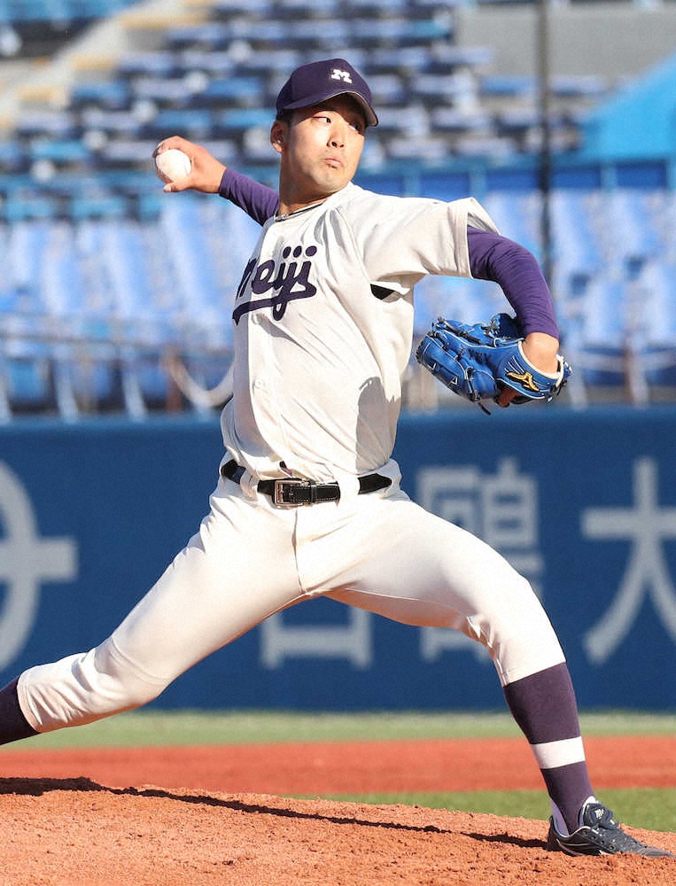 東京六大学野球 DeNA1位の明大・入江「同期につなげ」魂の6回無失点