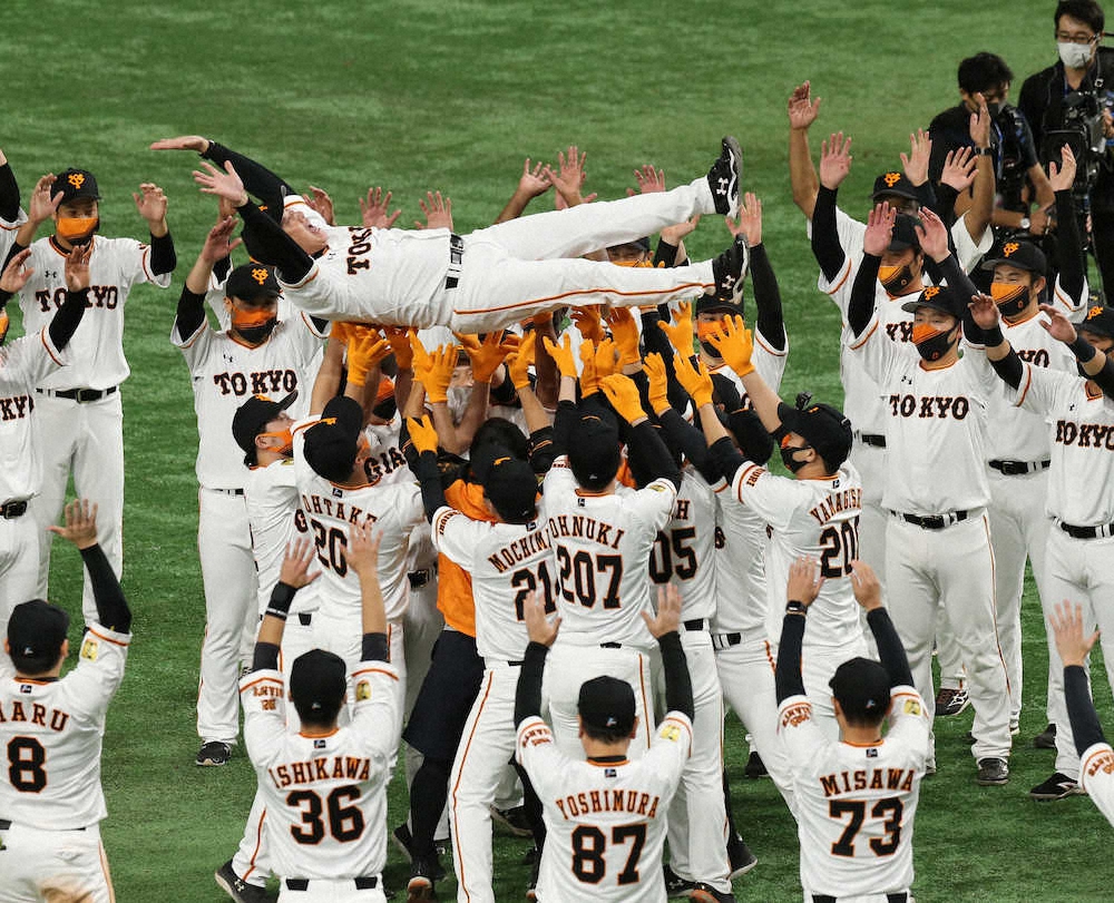 原巨人特別な連覇!史上初ドローV マスク&手袋で“ソーシャルディスタンス胴上げ”