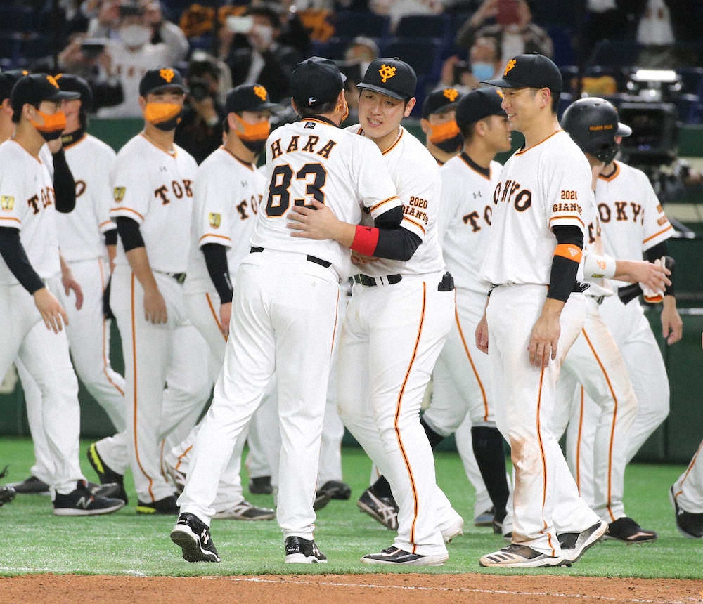 巨人・岡本らしかった。優勝後のグラウンドでの会見。ここまでリーグトップの28本塁打、86打点で4番の責任を見事に果たしたが「いや、僕自身が言うことでは…」とはぐらかす。坂本に「言っていいよ」、原監督に「若大将、しっかり言ってください」と促される。やっと「しっかり責任を果たせるように努力してきたつもりです」と少しだけ胸を張った。