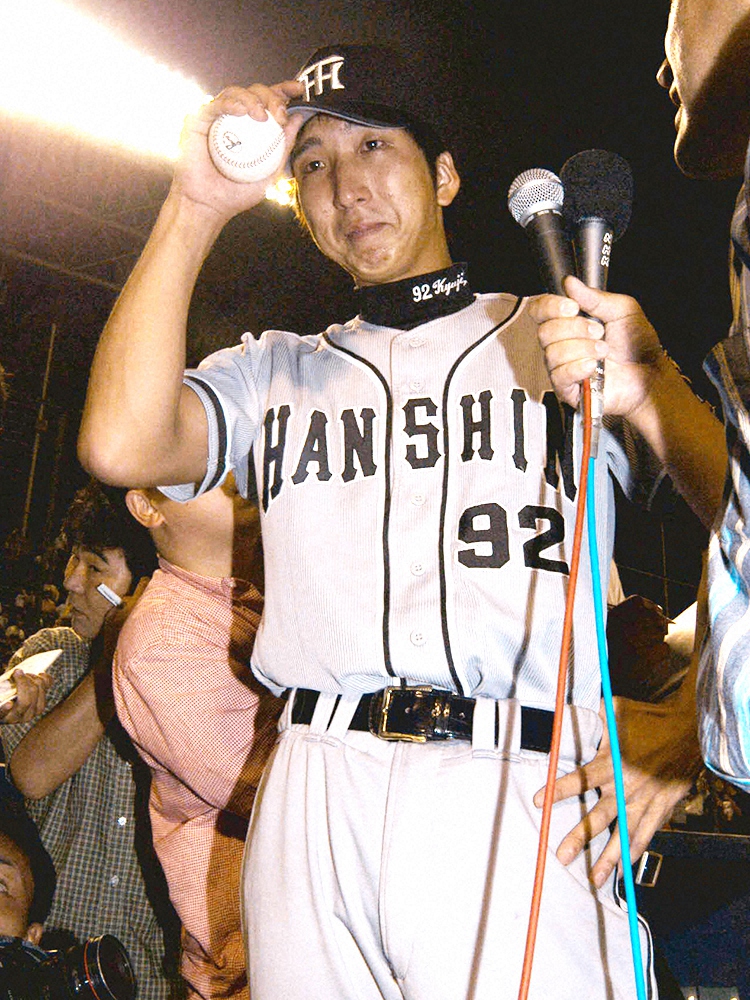 ▼「長かったです。ここまでチームに迷惑をかけてきましたから。アリアスのホームランが出たときは高校で優勝したときのイメージが湧いてきた」(02年9月11日、神宮でのヤクルト戦でプロ入り4年目での涙の初勝利。星野監督も目をうるませた)
