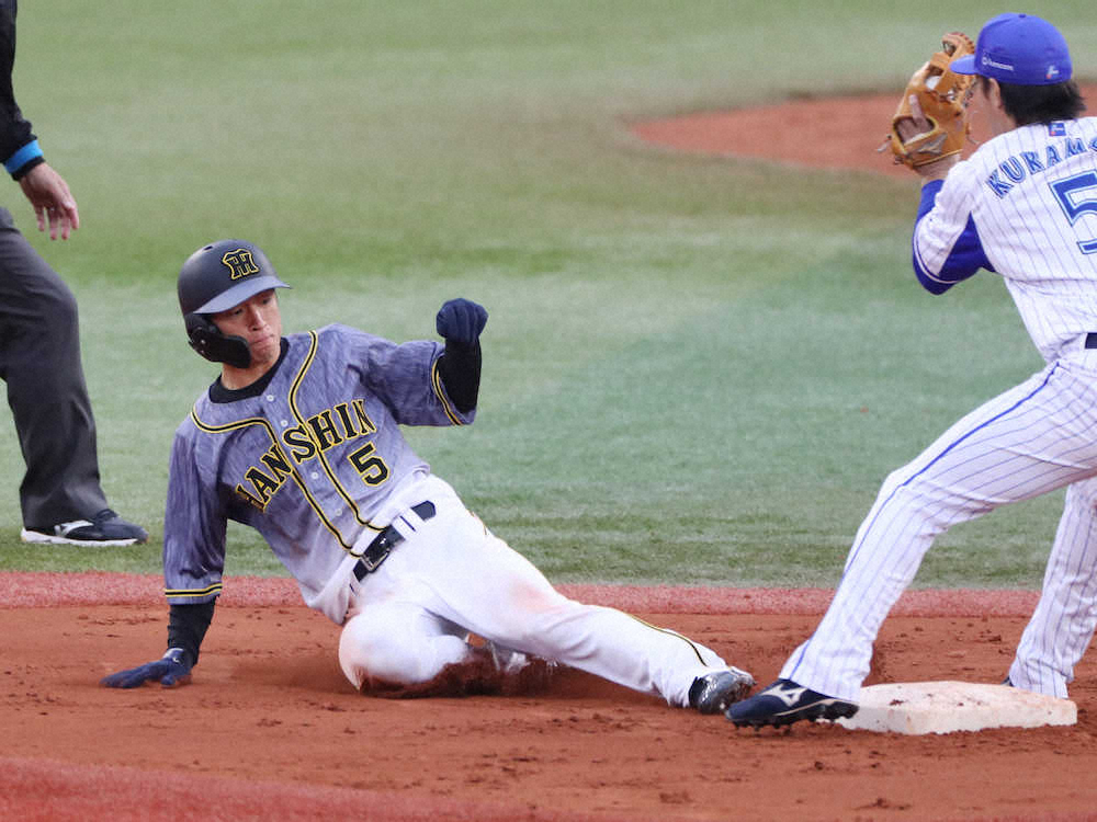 初回、先頭で右前打で出塁すると、1死後、マルテが空振り三振する間に二盗に成功し29個目。1―3の7回1死一、三塁では右前適時打を放ち、続く糸原の初球に二盗を決め、糸原の二塁打で一時勝ち越しの生還を果たした。
