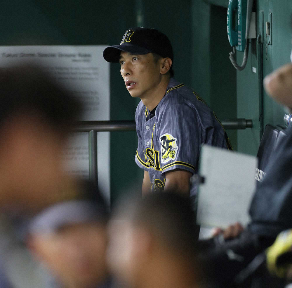 東京ドームのベンチで厳しい表情を浮かべる矢野燿大監督