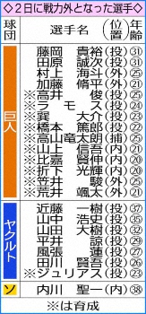 プロ野球の戦力外通告期間が2日から始まり、巨人で14選手、ヤクルトで7選手(育成含む)が戦力外通告を受けた。ソフトバンクは内川聖一内野手(38)の退団を発表した。例年はポストシーズン前後で通告期間を第1次と第2次に分けていたが、今季はコロナ禍による日程変更の影響で期間が分割されず、日本シリーズ終了翌日までとなる。