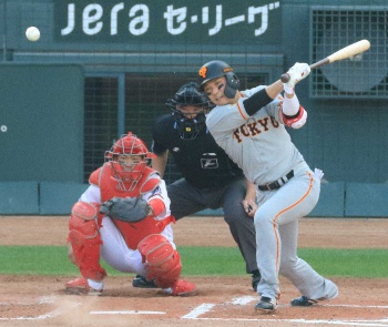 初回の第1打席は先発・九里からセンター方向へ強い打球を放つも、名手・菊池涼に阻まれ二ゴロ併殺打に倒れた坂本。4回に回ってきた第2打席でも、九里の直球をセンター方向へ。高いバウンドの打球は二遊間を抜ける中前打となった。