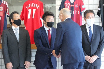 阪神からドラフト8位指名された石井大智投手(23)が3日、畑山統括スカウトらから指名あいさつを受けた。