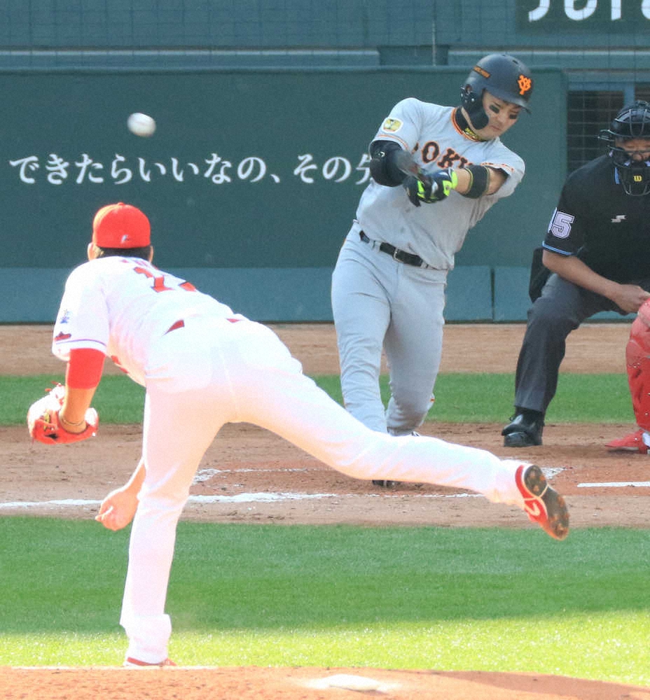 巨人・丸佳浩外野手(31)が、4回に先制打を放った。1死一、二塁。九里の真ん中低めスライダーを捉えて右翼線二塁打。ここまで全試合に出場する31歳は「少し内側に入ってきたので、強く振りました。先制点がとれて良かったですね」とコメントした。