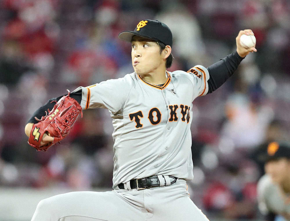 この日は初回に25球、2回に20球と球数が多く、5回で96球を投じた。5回1失点で今季初勝利を挙げた10月14日の広島戦(東京D)と同じ相手先発右腕・遠藤との投げ合い。その時は遠藤からタイムリー三塁打を放ったが、この日は0―0で迎えた5回、先頭の遠藤に左前打され、そこから1死満塁のピンチを招いて西川の併殺打崩れの間に先制を許すと、5回を投げ切って0―1の時点で降板となった。