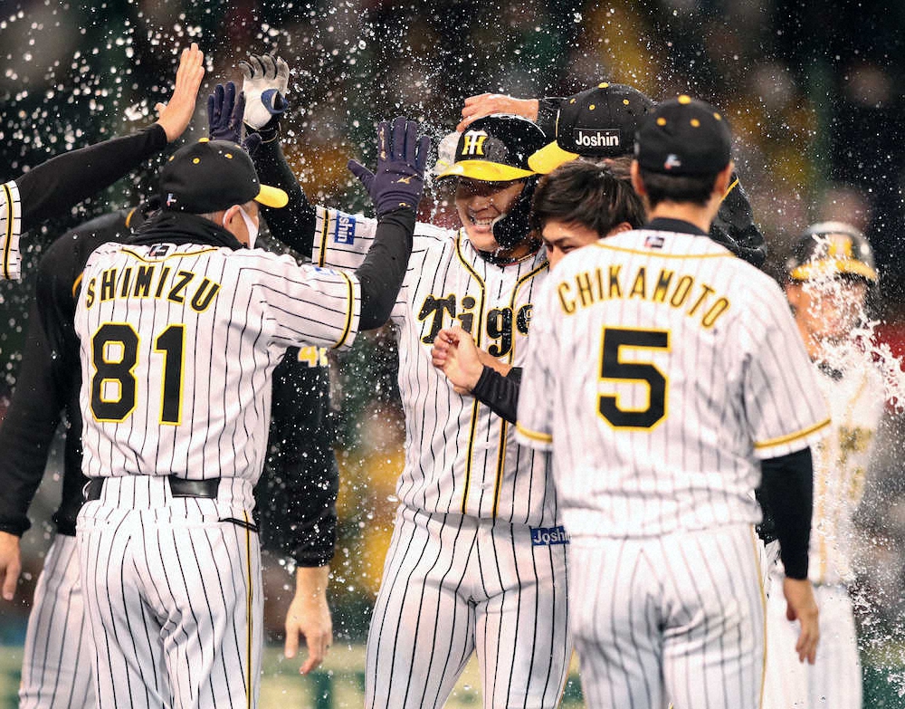 ウオーターシャワーを浴びた阪神・大山は両手を広げ、満面の笑みを浮かべた。救援陣が2度のリードを追いつかれる、何とも言えない展開の中で放った自身2本目となるサヨナラ本塁打。これぞ4番――の働きで虎党を歓喜させた。