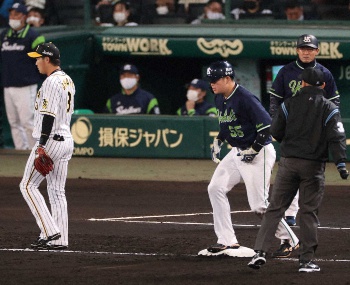 2回2死から右前打で出塁すると、宮本の打席で二盗に成功。宮本が四球で出塁すると、西浦の打席でダブルスチールでの三盗に成功。さら二塁走者の宮本に対するけん制の間に本盗を達成。1イニング3連続の「パーフェクトスチール」に成功した。